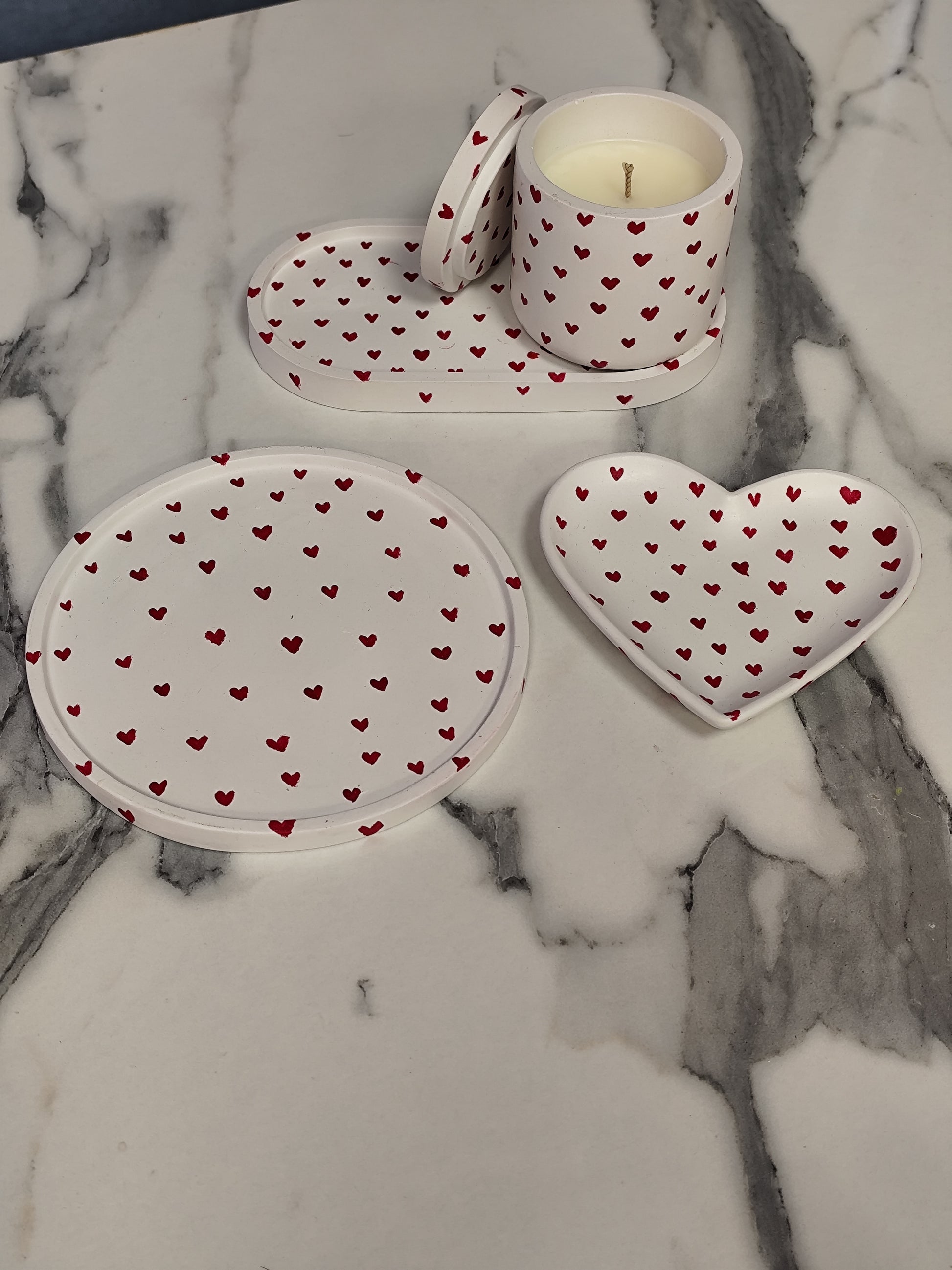 Χειροποίητο σετ πορσελάνης ζωγραφισμένο με καρδιές.