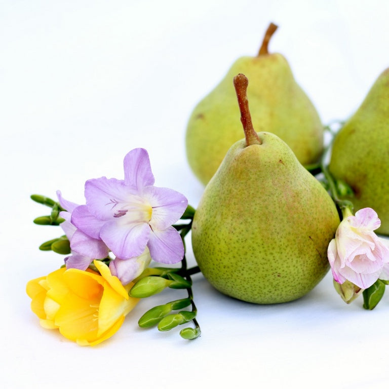 Το άρωμα αχλάδι & φρέζια συνδυάζει τη γλυκιά φρουτώδη νότα του ώριμου αχλαδιού με την ανθισμένη, ελαφριά και δροσερή φρεσκάδα της φρέζιας, δημιουργώντας ένα αποτέλεσμα που είναι ταυτόχρονα γλυκό, αναζωογονητικό και θηλυκό.Συχνά περιγράφεται ως φρουτώδες-λουλουδένιο, προσφέροντας μια αίσθηση καθαριότητας και ηρεμίας.