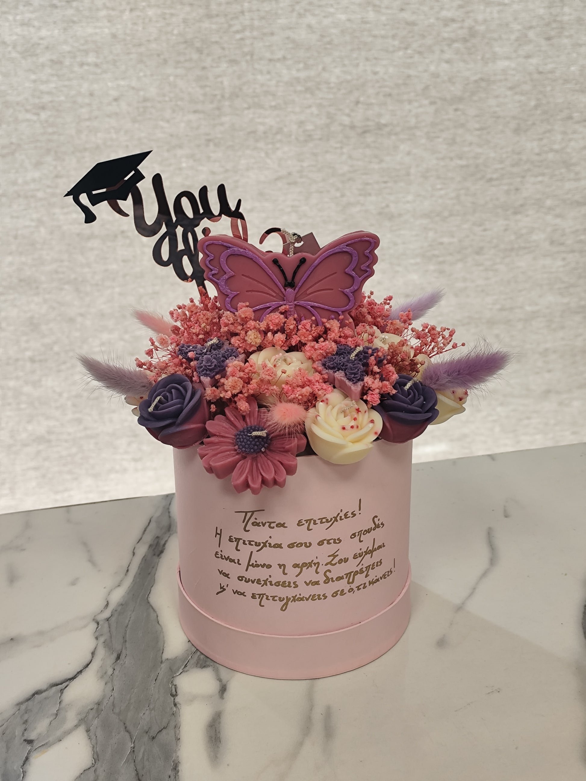 Αν θέλετε το μπουκέτο σας να γίνει πιο ξεχωριστό σας δίνετε η δυνατότητα παρακάτω να σημειώσετε το δικό σας μοναδικό κείμενο που θέλετε να αναγράψουμε επάνω. Αν επιθυμείτε να περιέχει και κάποιο κερί με νούμερο ηλικίας μπορείτε επίσης να το σημειώσετε παρακάτω.