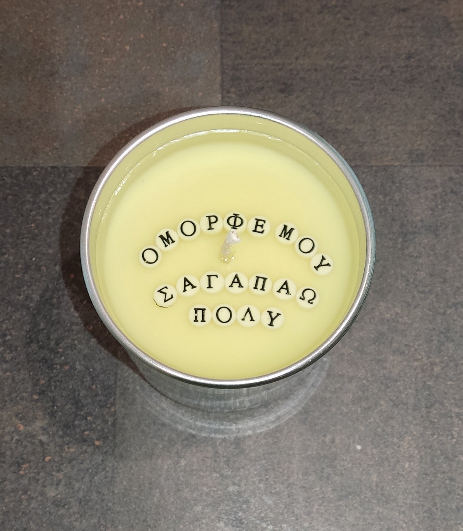Χειροποίητο ποτήρι κεριού που αποκαλύπτει μήνυμα όταν καίγεται. Ιδανικό για Αγίου Βαλεντίνου, επετείους ή ρομαντικά δώρα. Τα γράμματα μπορείς μετα να τα κάνεις μπρελόκ, κολιέ ή βραχιόλι και να κρατήσεις το δικό σου μήνυμα αγάπης για πάντα!